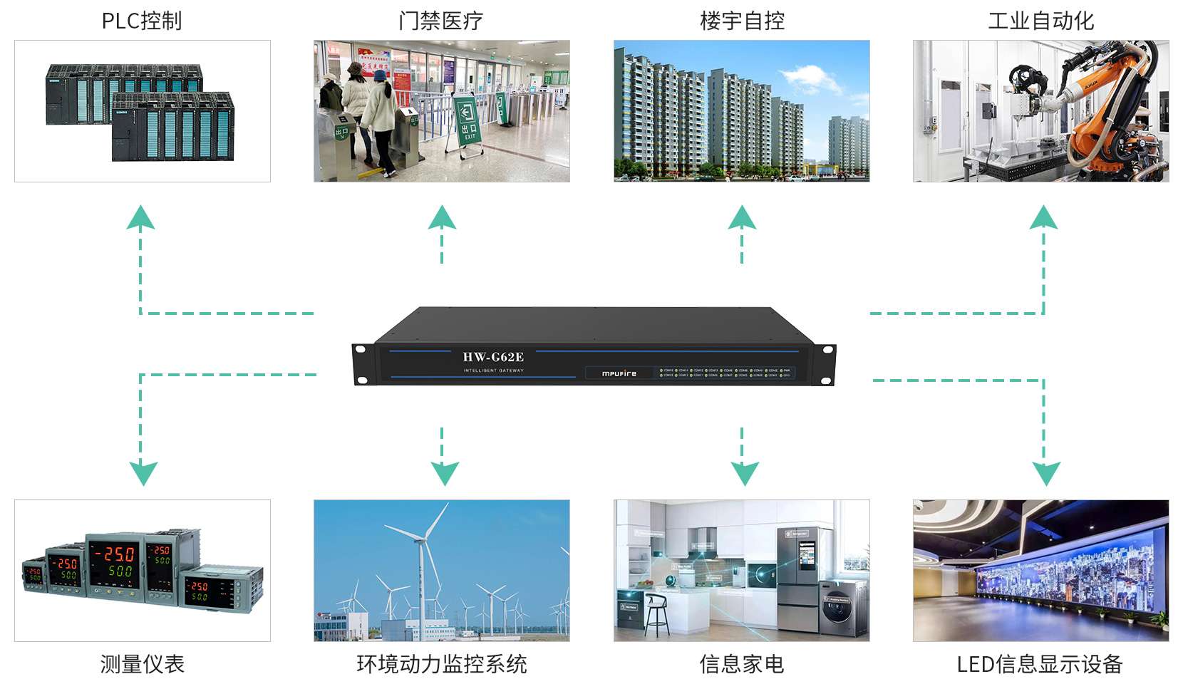 支持可视化PC配置软件及WEB页面配置,通讯参数设置灵活方便。广泛应用于工业监控、电力系统、交通管理、煤矿监控、水处理、石油化工、环境动力监控系统、 信息家电和LED信息显示设备等行业。